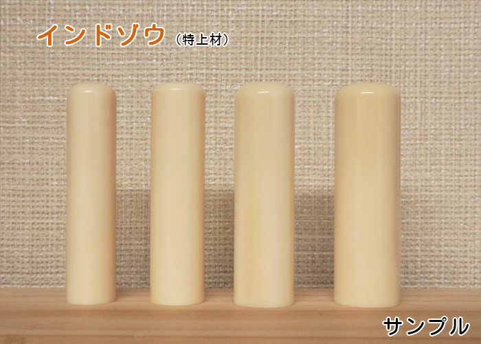 アフリカゾウのハード材の固さとソフト材のしなやかさの双方の良さを持ちます。そのため、適度な粘りと固さを持ち、彫刻に適した素材であり、独特のツヤと重量感を有します。朱肉とのなじみもよく、使うたびに風格がでてきます。一生涯持ち続けるのに最適なはんこです。