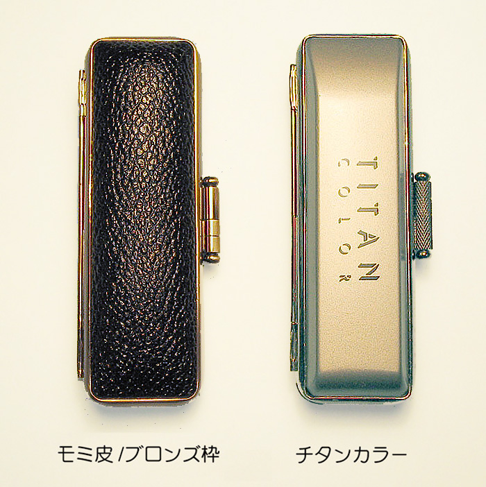 【チタン】 鉄の2倍、アルミニウムの6倍の強度を持ったはんこ。適度な重量感、渋いゴールドのメタリック感。欠けや磨耗に強く、朱肉との相性も抜群。