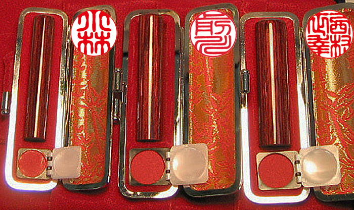 個人用印鑑 手彫り印鑑3本セット 楓(かえで)実印15mm+銀行印12mm +認印10.5mm ケース付き印鑑 【送料・代引き手数料無料】¥23,100 税込み -