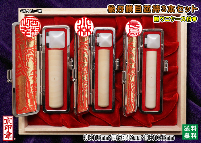 個人用 手彫 印鑑 3本セットインド象牙(上材) 実印15mmx銀行印12mmx認印10.5mm【送料・代引き手数料無料】¥107,430 税込み -