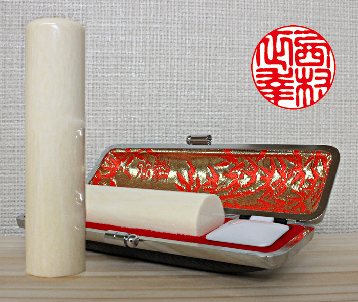 個人用 手彫り 実印 象牙(特選材)15ミリ×60ミリ+腹わに革印鑑ケースセット¥46,090 税込み -
